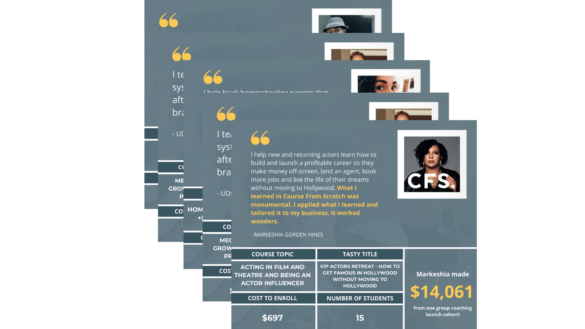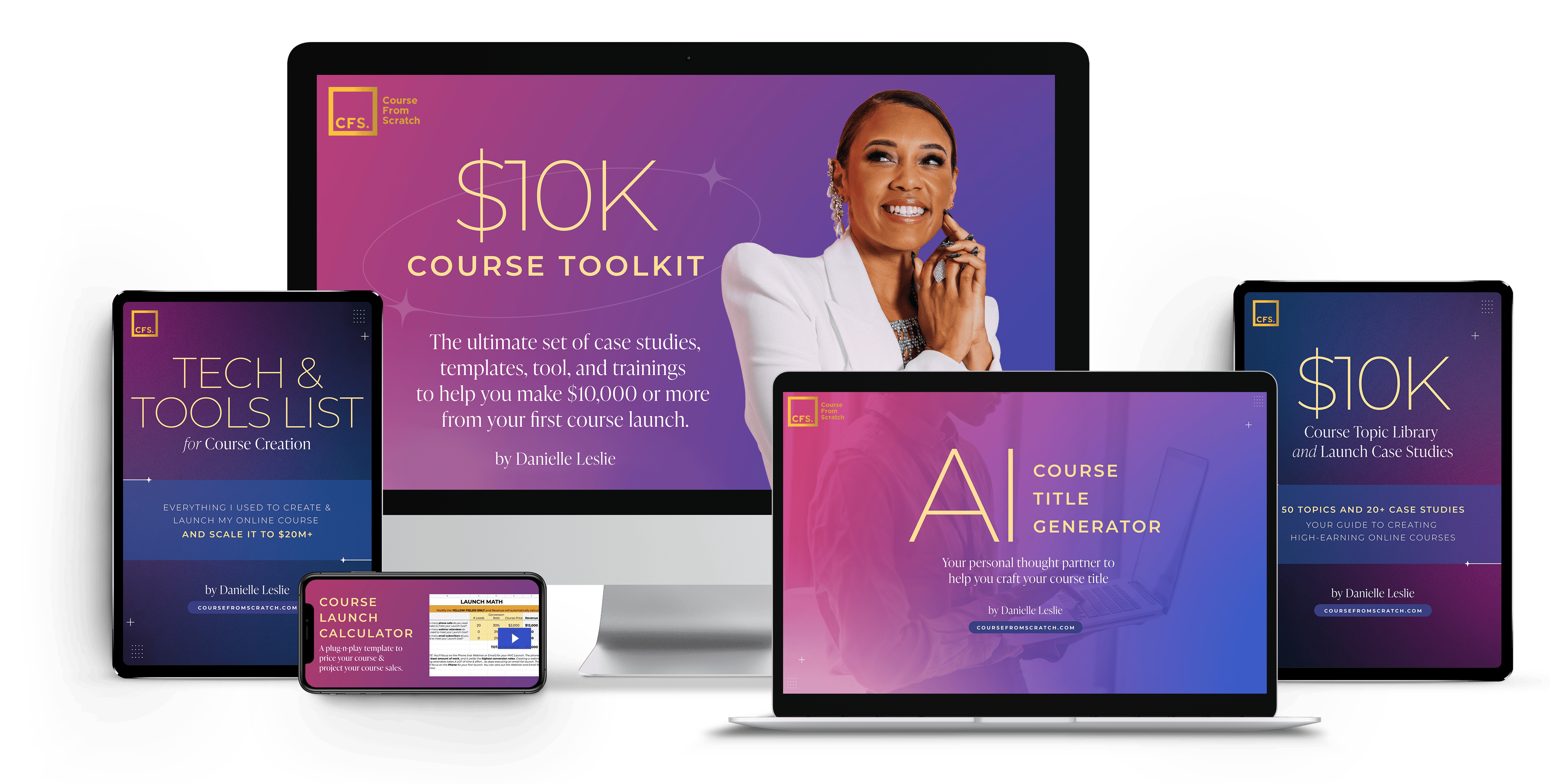 The ultimate set of case studies, templates, tools, and trainings to help you make $10,000 or more from your first course launch.